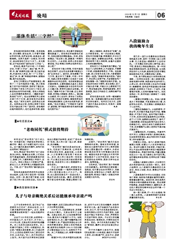 老张说:健身气功中有一个不错的功法,叫做“六字诀”,通过“嘘、呵、呼、呬、吹、嘻”来调养五脏六腑,助力延年益寿;对退休的人来说,有一个“三字经”,通过“弃、学、尊”持续涵养精神,增强体魄,提升生活品质。