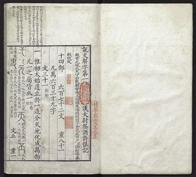 目前常用汉字不到4000个,《说文解字》却收录了9353个正篆,1163个古文、籀(zhòu)文等重(chóng)文。许慎将它们分为540部,按文字形体和偏旁构造排列,给每个字解释字义,分析形体构造,注明读音,使文字的形、音、义清晰明确,构建了一个庞大、严谨而精妙的汉字说解体系,使一个个零散的汉字如网络般呈现在我们面前,这也成为以后字典辞书的编纂通例。