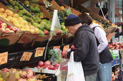 ▶ 12月11日,顾客在美国纽约一家超市挑选水果。