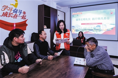 活动中,街道和社区工作人员深入各社区,通过PPT、海报、传单等方式,引导居民抵制不良习俗,以实际行动移风易俗、破旧立新。