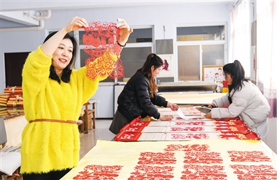 本报讯 (记者 辛雅君) 小窗花剪出大产业。连日来,广灵县城东的广灵剪纸文化产业园区内,工作人员正忙碌地装裱着《金蛇迎春》系列剪纸,为即将到来的春节增添浓厚的节日氛围。
