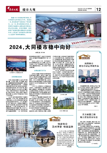 随着2024年的脚步渐行渐远,今年的楼市也即将画上句号。回望这一年,我市房地产市场发生了很多变化。这一年,我市房源供应充足,市场竞争日趋激烈,促销去库存是各大房企的主旋律。好在伴随着一系列房地产金融举措和调整优化政策的利好,大同地产市场焕发出新的活力,也迎来了新的发展契机。