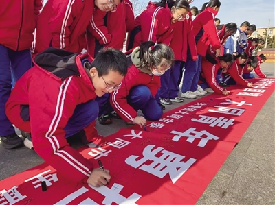 本报讯 (记者 孙露) 为了向广大团员青年传递节约粮食的重要性,激发青少年对粮食安全的责任感和使命感,近日,团市委、市学联在大同二十二中开展了“青春守护中国粮 大同青年勇担当”条幅签名活动,通过宣传和引导,让更多青少年养成文明健康绿色环保的生活习惯,主动加入到节粮爱粮队伍,营造浪费可耻、节约光荣的浓厚氛围。
