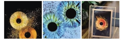 所谓“虹膜写真”,就是利用高清摄影工具拍摄人的“黑眼球”。由于虹膜包含很多相互交错的斑点、细丝、冠状、条纹、隐窝等细节特征,且每个人的虹膜特征均不相同,因此被一些人认为具有拍摄留存的艺术价值。