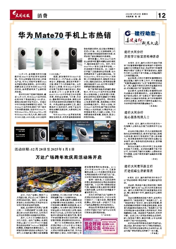 12月4日,备受瞩目的华为旗舰手机Mate70系列在我市迎来首销。作为全球智能手机市场上的高光产品,华为公司每年发售的Mate系列新机都备受期待。在华为原生鸿蒙系统正式发布后的Mate70系列手机,给消费者带来了全新的使用体验。