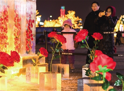 随着哈尔滨冰玫瑰的火爆,大同也将这份冬日的浪漫带到市民家门口。记者在现场看到,一束束红色玫瑰在冰中绽放,白天雅致清新,夜晚冰灯点亮时,散发出别样的浪漫与活力,为寒冷的冬日带来一抹温暖的色彩。