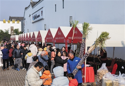 ▲12月21日,游客在杭州市临平区塘栖镇的共富年货节上选购特色农副产品。