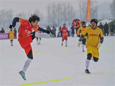当日,南北乡村雪地足球邀请赛在吉林省舒兰市小城镇南阳村举行。贵州省榕江县的贵州村超队从3000公里外远赴东北,与东道主吉林市丰满区代表队在冰天雪地中开展一场友谊赛。