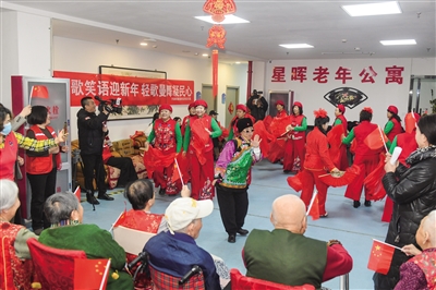 星晖老年公寓里张灯结彩,洋溢着节日的欢乐氛围。一场以“欢歌笑语迎新年,轻歌曼舞凝民心”为主题的活动盛大开场。活力四射的舞蹈、欢快喜庆的秧歌等节目轮番登台,老人们沉浸其中,现场掌声雷动。社工们与老人们亲切交谈,了解他们的生活所需,并为他们精心准备了新鲜水果。另一边的厨房里,社工们分工协作,为老人们包饺子。“这饺子馅大皮薄,味道真好!”老人们吃着饺子,眼中满是幸福与感动。
