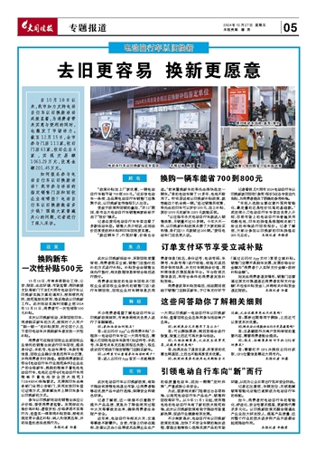 如何报名参与电动自行车以旧换新活动?我市参与活动的指定销售门店和回收企业有哪些?电动自行车以旧换新能省多少钱?围绕大家普遍关心的问题,记者进行了深入采访。
