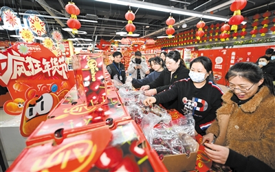 ▲ 12月26日,在天津市西青区一家大型商超,顾客在选购刚到货的智利车厘子。