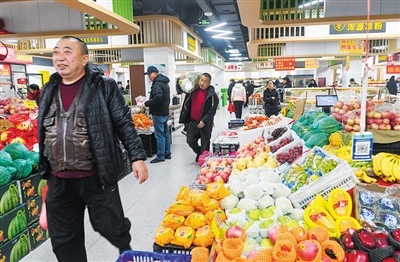 27日11时许,记者走进便民市场,只见瓜果蔬菜、各类小食品品种齐全,地面干净整洁,摊位整齐划一。正值中午时分,市场内买菜的居民络绎不绝。“10月份市场还在装修时我们就预定了位置,这里场地更宽敞,不用抢位置,冬天还暖和,更比租门面房实惠。”卖了十多年水果的张师傅,如今在水泊寺便民市场的水果摊位安了“家”。