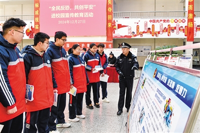 本报讯 (记者 丁亚琴) 12月27日是《中华人民共和国反恐怖主义法》颁布9周年纪念日。当日,我市各学校开展系列主题活动,进一步增强广大师生知恐、防恐的安全防范意识,筑牢校园安全防线。