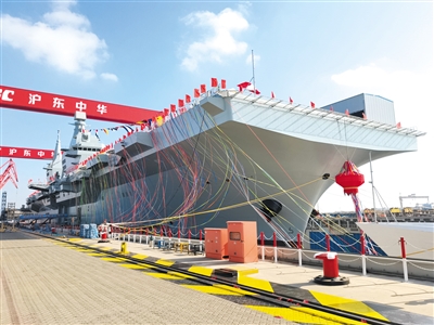 ▲ 12月27日上午,我国自主研制建造的076两栖攻击舰首舰下水命名仪式在上海举行。