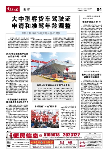经中央军委批准,076两栖攻击舰首舰命名为“中国人民解放军海军四川舰”,舷号为“51”。四川舰满载排水量4万余吨,设置双舰岛式上层建筑和全纵通飞行甲板,创新应用了电磁弹射和阻拦技术,可搭载固定翼飞机、直升机、两栖装备等,是海军新一代两栖攻击舰,是推进海军转型建设发展、提升远海作战能力的关键装备。该舰下水后,将按计划开展设备调试、系泊试验、航行试验等工作。