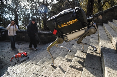 ▲12月30日,在山东省泰安市泰山景区,机器狗进行登山测试。