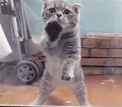 公司新上岗的保洁员,正在卖力地擦玻璃。
