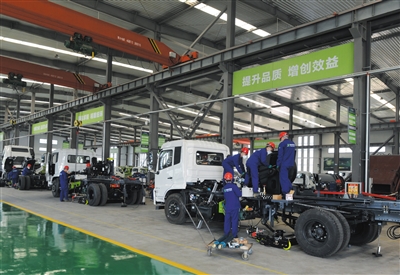图为工人们正在生产线上紧张有序地工作。