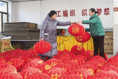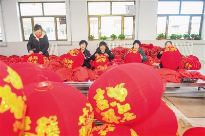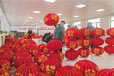 1月6日,云州区瓜园乡瓜园村灯笼产业车间内,一片热火朝天的劳作景象。工人们有条不紊地进行灯笼的加工工序,一旁的晾晒区,一串串大红灯笼整齐排列,红彤彤的色彩映照出即将到来的新春氛围。