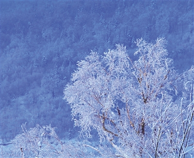 没错,在雪乡,随便哪里,按一下快门,就是一张绝美的雪景。但我的目光还是贪婪地盯住窗外,看那连绵起伏如驼如象如游龙的雪峰,收敛了笑对苍穹的傲慢,看满树开满梨花银菊的雾凇在清风中多情地摇曳,看山间密密的松与桦全被妆扮成玉树琼枝,如东山魁夷的画一般幽静而安详……