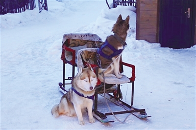 匆匆吃完饭,马拉爬犁已等在门口。这没有车轱辘的交通工具,就是几块长木板在雪地上滑,马一跑起来,便有些颠,颠得人屁股生疼,却仍是兴奋。冷风吹过如刀刮一般,戴了狗皮帽子有着厚厚的包裹也抵不住,零下30多度呢。厚厚的雪被盖在人家的房顶上像硕大的面包,檐下的冰凌有1尺长,矮松上也是雪,像美女涂了脂粉,风一吹,那粉便纷扬成小片雪雾——此处的雪与南方到底不同,干的,阳光直射也不融化。正是一次次的积雪,将雪乡变成了人人心里的童话。