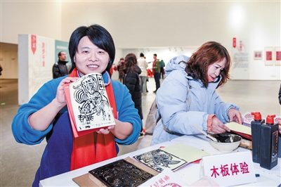 展出的年画、泥塑、布艺、剪纸、纸编等众多艺术门类的作品生动有趣,现场还设有雕版印刷、写福字等民俗体验活动,吸引了众多参观者。古城“向阳花”小讲解员团队40多人分布在各展区,为观众认真细致地讲解。