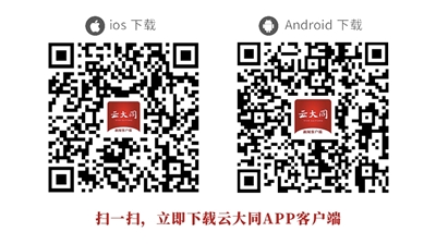 即日起,用户可通过扫描(右)二维码,或者登录App Store、应用宝、华为、小米等应用商店下载安装“云大同”APP。
