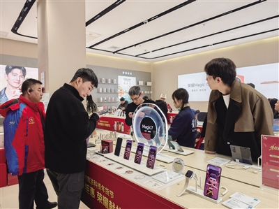 图为市民了解手机换新补贴政策。