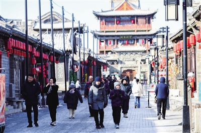27日,大同古城内大街小巷换上新春主题装扮,年味儿扑面而来。企事业单位、沿街商户纷纷张贴福字和春联,街头巷尾处处张灯结彩,欢乐祥和喜迎新春佳节。