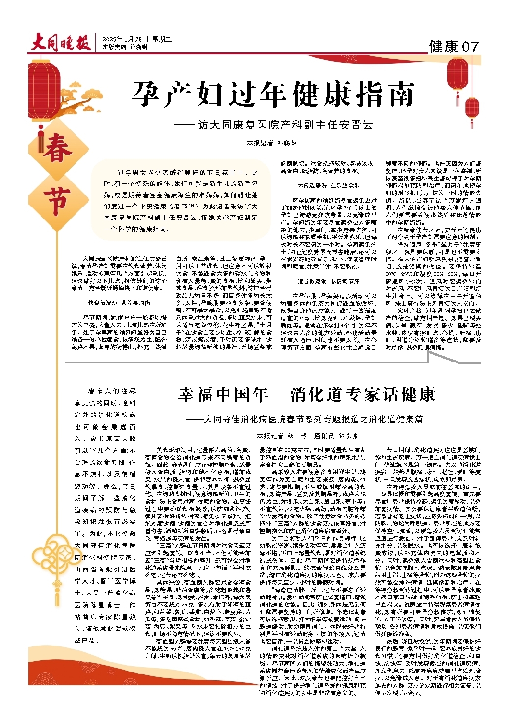 ~~~——大同守佳消化病医院春节系列专题报道之消化道健康篇