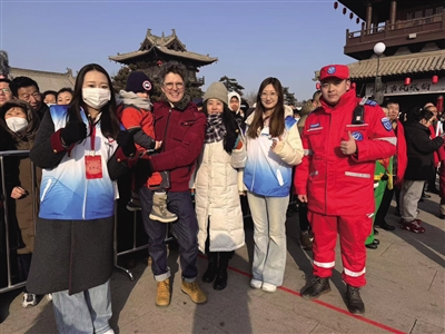 了解情况后,三位志愿者为其开辟出一条通道。他们一边耐心地向周围的市民、游客解释,一边小心翼翼地引导这家人向人群内走去。令人感动的是,围观人群主动侧身让路,多位大同市民得知是外国游客想看社火后,毫不犹豫地将自己的位置让了出来。期间,王亚茹始终陪伴在丹麦一家人身边,并热情地向他们介绍大同春节期间丰富的文化活动。丹麦夫妇听后,对大同丰富的春节文化活动称赞不已,不断夸赞中国春节的年味儿太浓、太好玩了。临别时,他们竖起大拇指,用不太流利的中文说:“大同景好,人更好!” 本报记者 龙中华
