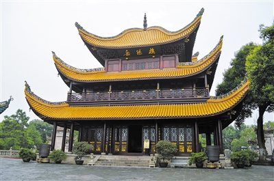 走出岳阳楼,从远处回看,只能望见隐约在茂密树冠中的黄色楼顶。在江南诸名楼中,岳阳楼的规模形制是最小的。论高度,岳阳楼只有19.42米高,仅为滕王阁的三分之一高,还不及黄鹤楼的一半高,但是,岳阳楼不朽的魅力,不在于它的身姿是否巍峨,而在于它的境界独特。