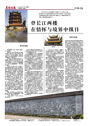黄鹤楼满载千年思绪,在滚滚长江水的浪淘下,成了一座抒发情怀的高楼。无数文人墨客或得志,或失意,或惆怅,或悲壮,登上黄鹤楼,思接千载,视通万里。无论是“日暮乡关”的乡愁情怀,“孤帆远影”的思友情怀,还是“叹江山如故”的家国情怀,“茫茫九派”的天下情怀……他们总有一种情怀,萦绕心间,无法排遣,只好“把酒酹滔滔”,与滚滚长江对语。