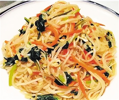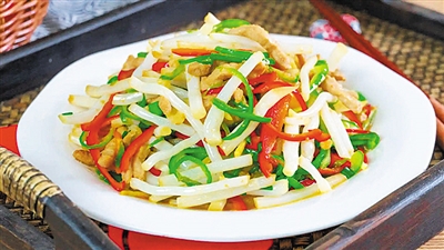 采访中赵富平对记者说,元宵节是老大同人最重要的节日之一。元宵节家宴虽远不及年夜饭丰盛,但也比较讲究。寻常人家元宵节家宴上要有四道菜:第一道是大拌粉,也叫押桌菜。以什锦拌粉打底,堆成一个底大上小的塔形,在“塔身”上分别“披”猪头肉片、肉肠片、酱瓜肉块、洋(海)米海蜇、石花红菜等6——8种其他凉菜。煮鸡蛋切成牙儿,呈莲花状摆放在“塔顶”上,寓意团圆美好。此外,要有一个碗菜,即烧肉、丸子之类的,一个肉丝炒银针(绿豆芽),还要有一个糖溜山药,寓意甜甜蜜蜜。将土豆切块油炸;将红糖放入锅中加水化开,加水淀粉,熬成糊状,加入土豆块翻炒均匀,淋明油出锅装盘,再撒白糖、青红丝或京糕(山楂糕)碎即可。“糖溜山药现已失传”,赵富平颇感遗憾地说。元宵节家宴主食除了饺子,便是元宵节最主要的一道美食——元宵。