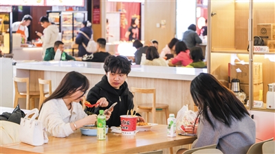 小吃和特色美食也成为食客们的热门选择,许多小吃店和商场餐饮区游客络绎不绝。市民张女士说,春节期间,多个地标商场的餐饮区人气高涨,热气腾腾的特色小吃香味四溢,与春节的喜庆氛围完美融合。
