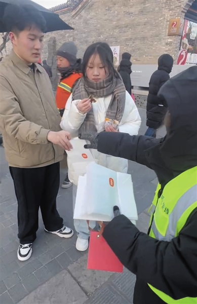 市文化旅游投资集团有限公司在古都灯会核心区域免费发放环保垃圾袋,累计发放定制环保垃圾袋2万个,以文旅担当守护古城环境,以暖心服务擦亮文明底色,赢得游客广泛赞誉。