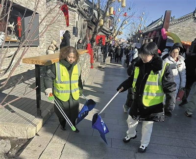 春节期间,志愿者们活跃在善化寺、华严寺、小石子村等景区景点,为游客提供贴心服务的同时,积极维护景区环境。