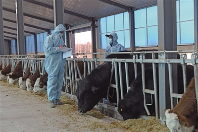 图为工作人员对圈养和牛、西门塔尔肉牛完善信息登记与管理。