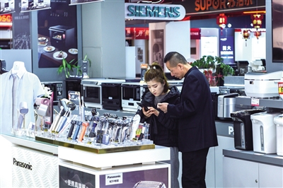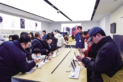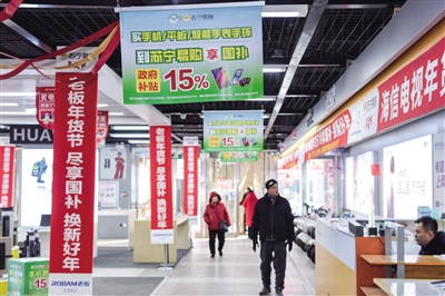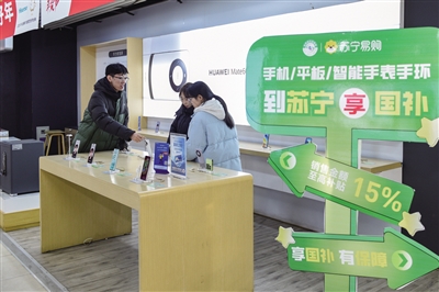 记者日前在北方电器、苏宁易购等手机卖场看到,店内到处张挂着以旧换新宣传海报。手机、平板等展柜前围满了前来咨询的顾客,工作人员耐心细致地介绍手机的特点、使用方法、活动规则和补贴政策。