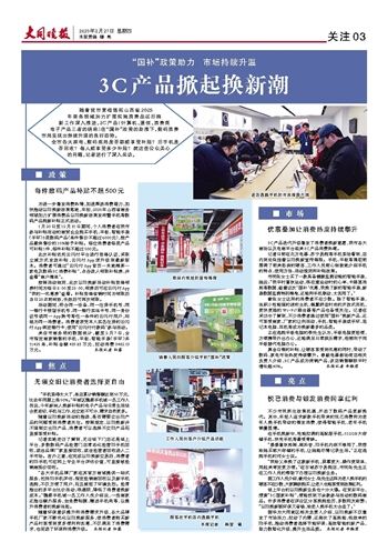 3C产品迭代升级激发了消费者换新意愿,我市各大商场以及电商平台迎来3C产品消费热潮。