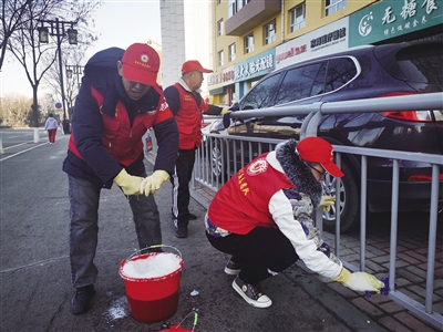 5日,市退役军人志愿者协会老兵公益志愿队的志愿者们来到三医岗,擦拭栏杆、公安亭,开展志愿服务活动。