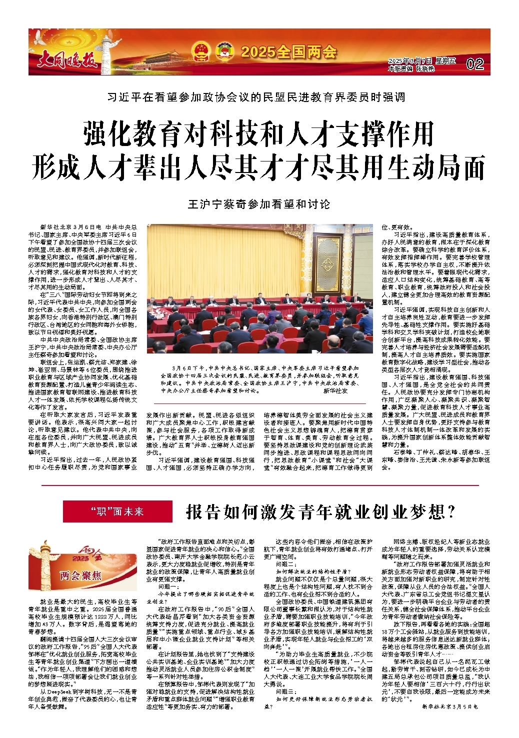习近平在看望参加政协会议的民盟民进教育界委员时强调~~~王沪宁蔡奇参加看望和讨论