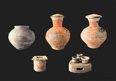 考古发掘报告显示,28座墓葬形制以土洞墓为主,是西汉中晚期盛行的竖井和斜坡墓道,随葬陶器以成套的壶、罐组合为主,多数墓中出土的浅盘口、矮假圈足壶均为西汉晚期典型陶器。同时,所有墓葬均未出现新莽时期典型的“大泉五十”“小泉直一”等铜钱,也说明这批墓葬的年代下限应早于新莽时期。个别墓葬还出土井、灶以及鼎、壶、盒等仿铜陶礼器。