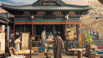 第三,宋代的建筑色彩更加清淡、平和。宋朝建筑的规模通常比唐代小,青、绿等冷色调在建筑彩画中广泛运用,形式更为秀丽、雅致。在装修、装饰方面,色泽灿烂的琉璃瓦、精致的雕刻花纹、冷暖间色的彩画增加了建筑的艺术效果。该建筑色彩取向更符合现代审美对于“冷淡风”“高级感”的追求,在影视剧镜头语言的设计上更易于打造“电影质感”。