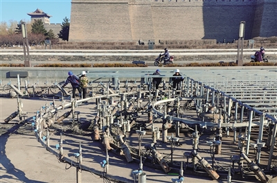 记者昨日在永泰门广场看到,工作人员正忙碌地穿梭于喷泉设施间,用于保障音乐喷泉安全过冬的钢制龙骨、格栅板和绿网设施已被全部拆除。“今年气温回升较快,我们依据实际天气状况,提前规划并启动了设备检修和更新维护计划,力求在旅游季来临前让音乐喷泉以最佳状态呈现。”永泰门广场物业相关负责人表示,目前,工作人员正集中精力对喷泉设备进行细致排查和检修,确保每一处水路畅通。同时,为保证用电安全和信号稳定,对线缆以及灯光系统进行全方位检查。在完成主池维修任务后,广场入口处的波光喷泉和矩阵喷泉也将陆续展开整体维护工作。