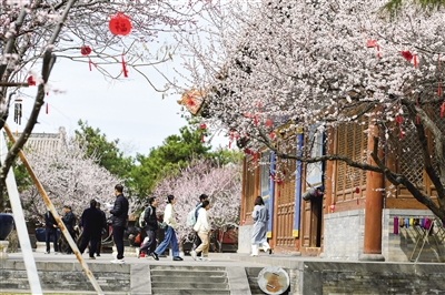 在华严寺、善化寺、法华寺、府文庙以及城墙带状公园,桃之夭夭,灼灼其华,与古老的建筑相互映衬,构成了一幅幅别具韵味的画面。善化寺中,盛开的桃花为庄严的庙宇增添了几分灵动的气息,游客漫步其间,仿佛穿越时空,置身于世外桃源。“我专门趁着清明假期赶来,没想到大同不仅有深厚的历史底蕴,还有如此迷人的桃花美景。”来自北京的游客李先生兴奋地说,古老的建筑与娇艳的桃花相互交织,这种独特的美令人陶醉。