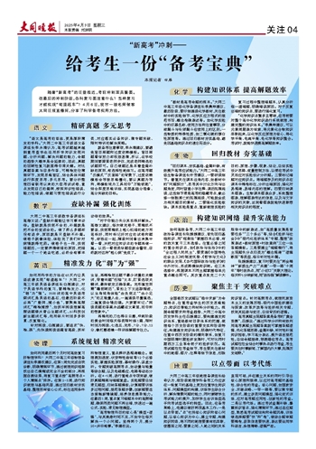随着“新高考”的日益临近,考前冲刺至关重要。在最后的冲刺阶段,各科复习要注意什么?怎样复习才能实现“弯道超车”?4月6日,我市一线名师做客大同日报直播间,分享了科学备考实用方法。