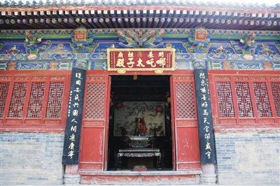 周公庙景区的东路建筑物留存不多,有一处哪吒太子殿倒是值得留步关注。据说周公庙里的哪吒殿始建于唐代,历史上每逢初一和十五会有人祭拜。今天所见哪吒殿面阔三间,清代建筑风格。1984年由台湾桃园护国宫出资、周公庙景区负责建设。一座殿宇联系起了两岸的两处古建筑,也让人们看到了哪吒文化在内地和东南沿海及台湾的影响。