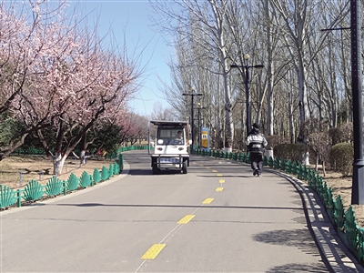 智慧健身步道全长约9公里,利用景区环湖园路,通过设置黄色分割标识,将健身区域与景区观光浏览车、巡逻车、环卫作业车等车辆通行区域隔开,实现人车分流,市民可以在专属步道上跑步、健走。步道上还贴心设置了距离标识,长跑爱好者能借此把控节奏、挑战自我,普通市民也可合理规划运动量,轻松掌握运动进度,尽情享受科学运动的快乐。市民龚先生说:“以前长跑找不到合适的地方,现在家门口就有这样的跑道,真是太方便了!”