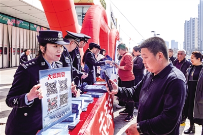 图为市民现场扫码关注网安公众号。